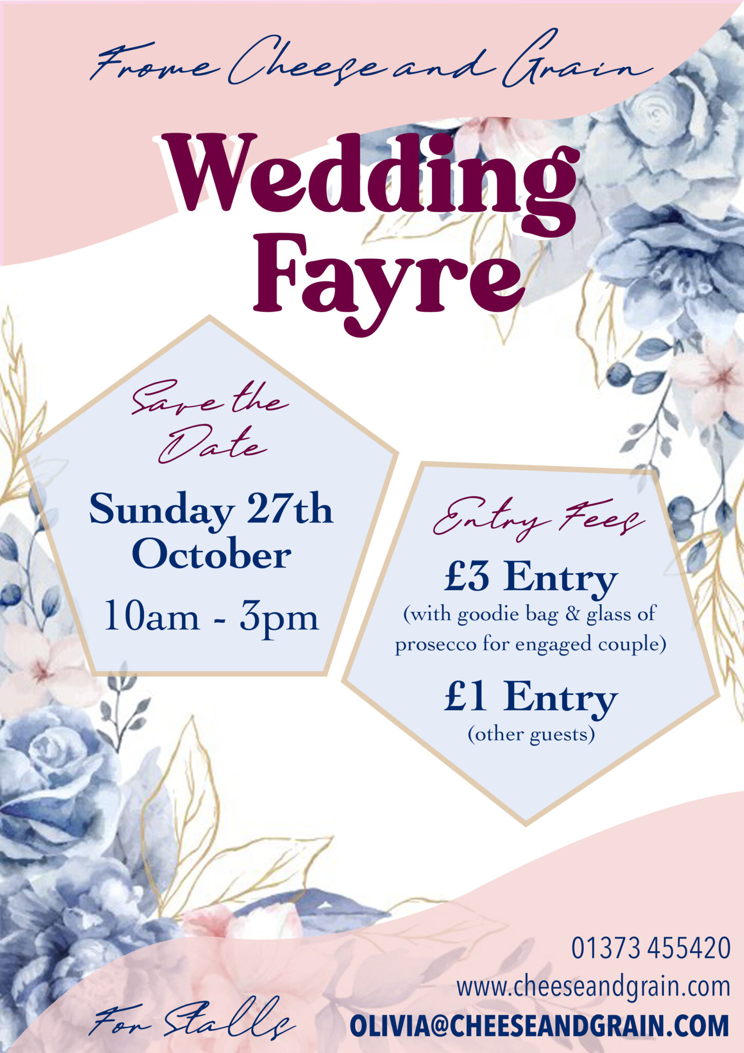 The Cheese & Grain’s first wedding fair! There will be a hall full of businesses to help you plan your wedding: photographers, caterers, cake decorators, wedding dresses and suits, hair and make up, venues, bands and more.